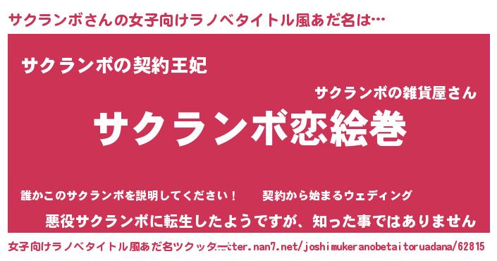 | 男性向けラノベタイトル風あだ名 | 『ノーゲーム・ノーサクランボ』 |