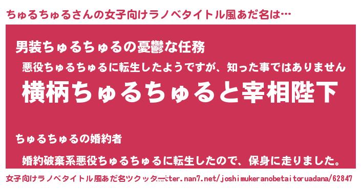 | 男性向けラノベタイトル風あだ名 | 『ちゅるちゅるに滅ぼされるだけの簡単なお仕事です』 |