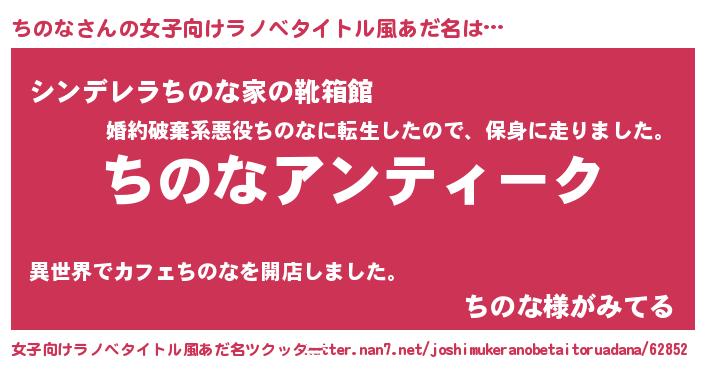 | 意味不明あだ名 | 『自称ちのな』『とにかく怪しいちのな』 |