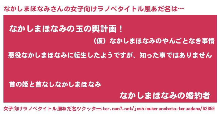 | 男性向けラノベタイトル風あだ名 | 『この素晴らしい世界になかしまほなみを!』 |