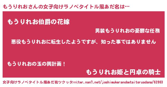 | 胡散臭い通販商品みたいなあだ名 | 『あなたにだけ特別に提供する100年もののヴィンテージワイン…その名も「もうりれお」』 |