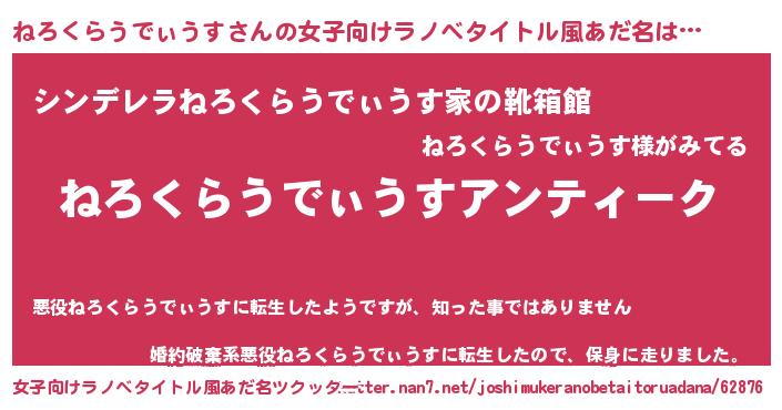 | 意味不明あだ名 | 『自称ねろくらうでぃうす』 |