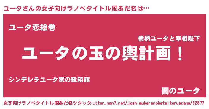 | ヘコむあだ名 | 『ユータ(笑)』『ユーっ子』『豆乳』 |