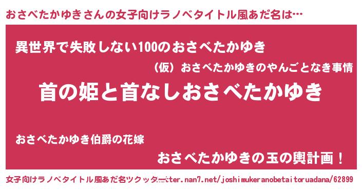 男性向けラノベタイトル風あだ名 | 『はたらくおさべたかゆきさま!』 |