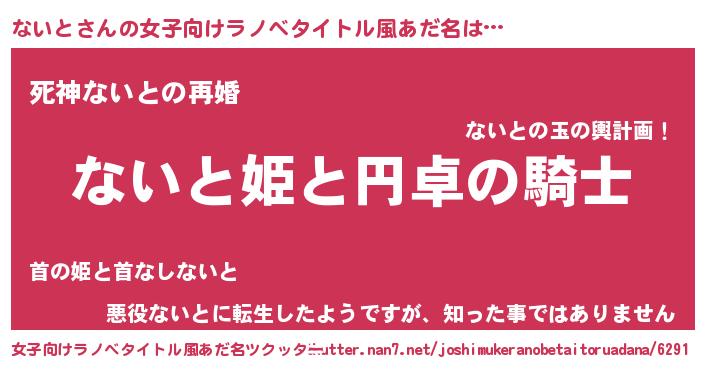 | 男性向けラノベタイトル風あだ名 | 『ナイトアートオンライン』 |