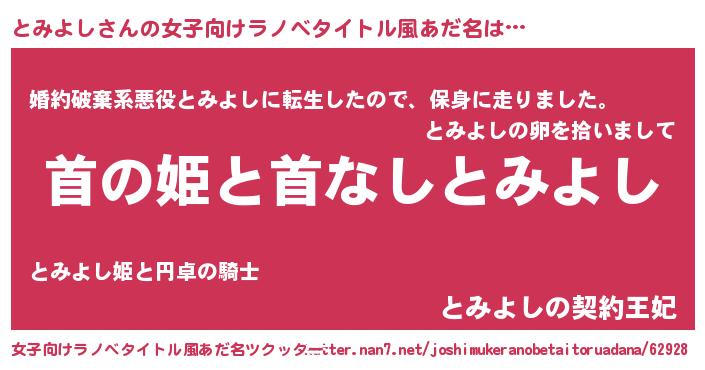 | 胡散臭い通販商品みたいなあだ名 | 『絶対に幸福をもたらす健康食品…その名も「とみよし」』 |
