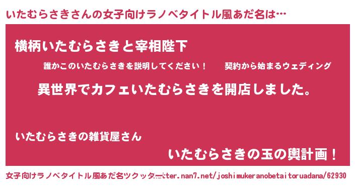 | ヘコむあだ名 | 『いたむらさき(笑)』『いたふぇ~』 |