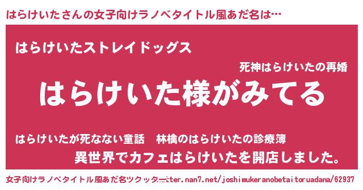 | ヒーロー風カッコイイあだ名 | 『炎刃騎士ハラ』『究極戦士ハラケイタ』 |