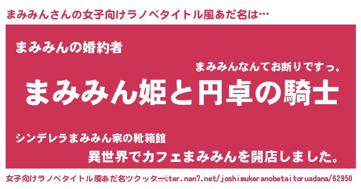 | 男性向けラノベタイトル風あだ名 | 『まみみんの憂鬱』 |
