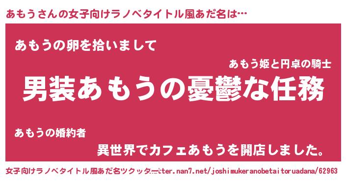 | 男性向けラノベタイトル風あだ名 | 『冴えないあもうの育てかた』 |