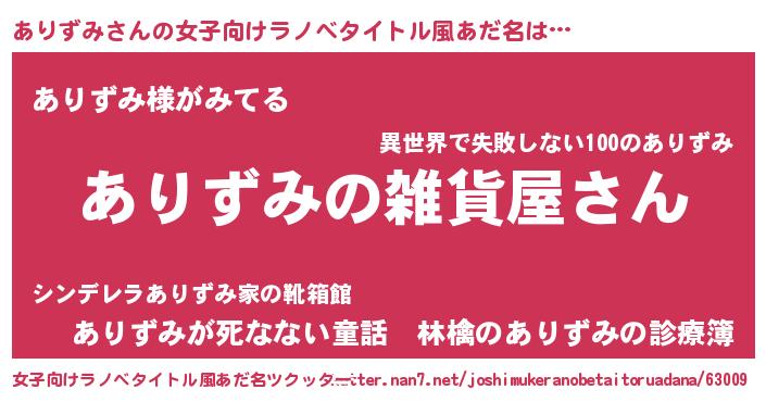 | 男性向けラノベタイトル風あだ名 | 『やはりありずみの青春ラブコメはまちがっている 』 |