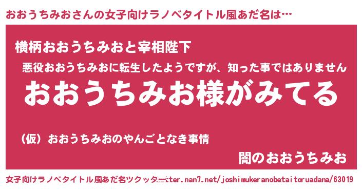 | 肩書あだ名 | 『おおうちみお塾長』『おおうちみお総統』 |