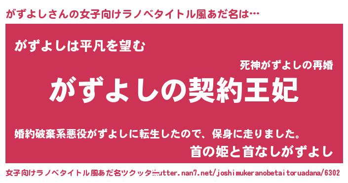 | 胡散臭い通販商品みたいなあだ名 | 『来世でも幸せになれる水素水…その名も「がずよし」』 |