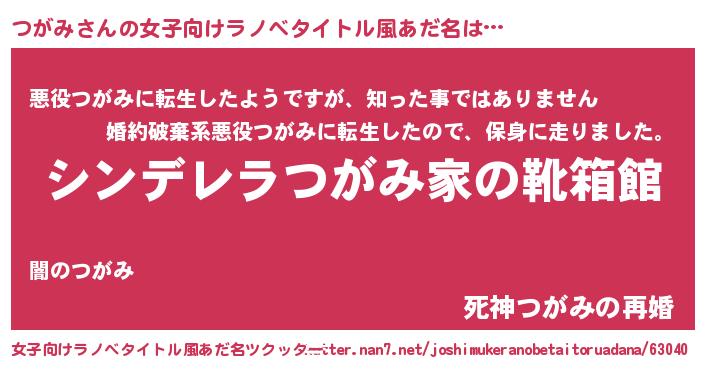 | 意味不明あだ名 | 『住所不定無職つがみ(81歳)』『自称つがみ』 |