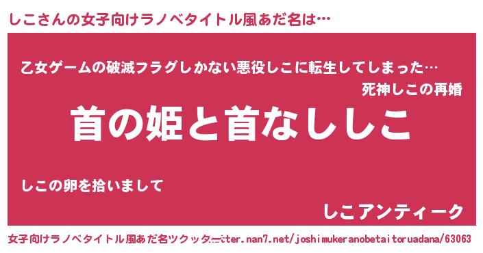 | 男性向けラノベタイトル風あだ名 | 『はたらくしこさま!』『魔弾の王としこ』 |
