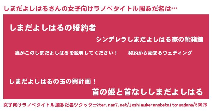 | 肩書あだ名 | 『しまだよしはる御曹司』 |