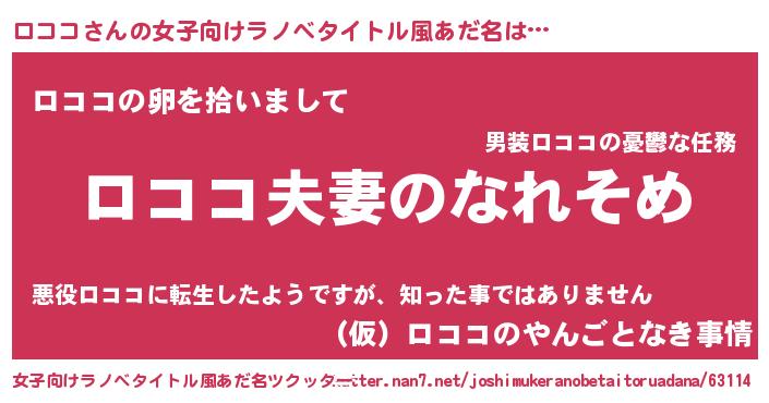 | 男性向けラノベタイトル風あだ名 | 『おまえをオタクにしてやるから、俺をロココにしてくれ! 』 |