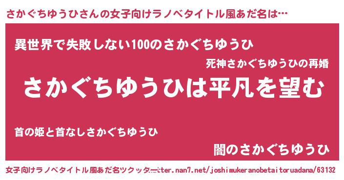 | 意味不明あだ名 | 『とにかく怪しいさかぐちゆうひ』 |