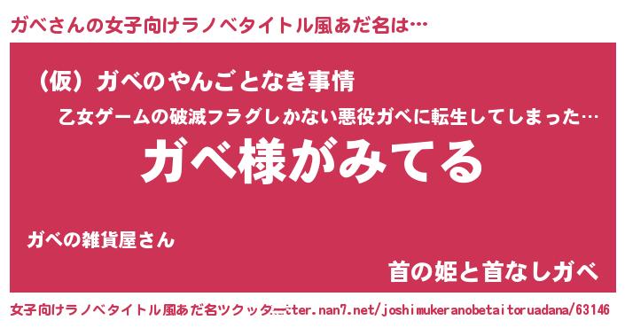 | 男性向けラノベタイトル風あだ名 | 『ガべの嫁は女の子じゃないと思った?』 |