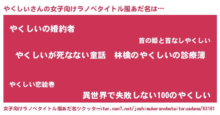 | 胡散臭い通販商品みたいなあだ名 | 『ハリウッド女優が絶賛した100年もののヴィンテージワイン…その名も「やくしい」』 |