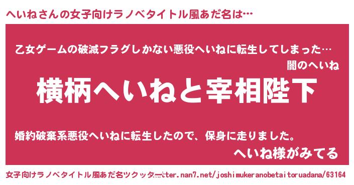 | 意味不明あだ名 | 『住所不定無職へいね(50歳)』『自称へいね』 |