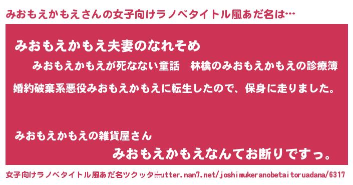 | 欧米人風あだ名 | 『トリンドルみおもえかもえ』 |