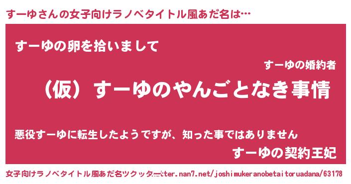 | 男性向けラノベタイトル風あだ名 | 『すーゆの憂鬱』 |