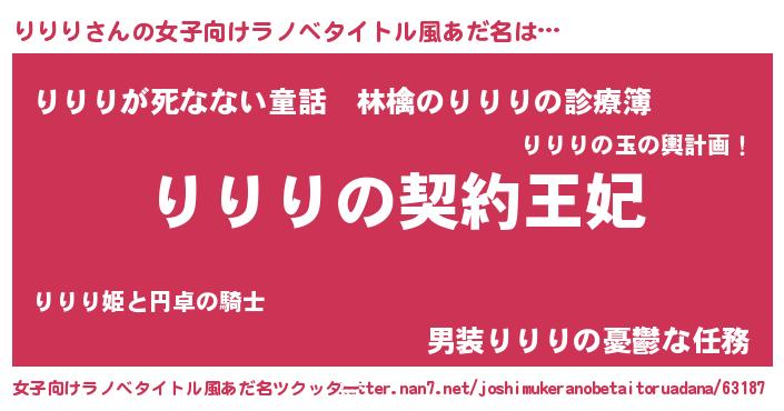 | 男性向けラノベタイトル風あだ名 | 『りりりという概念が存在しない退屈な世界 』 |