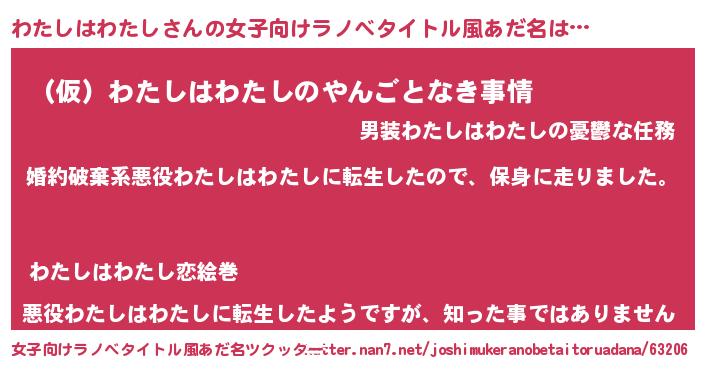 | 胡散臭い通販商品みたいなあだ名 | 『必ず成功する霊験あらたかなお札…その名も「わたしはわたし」』 |