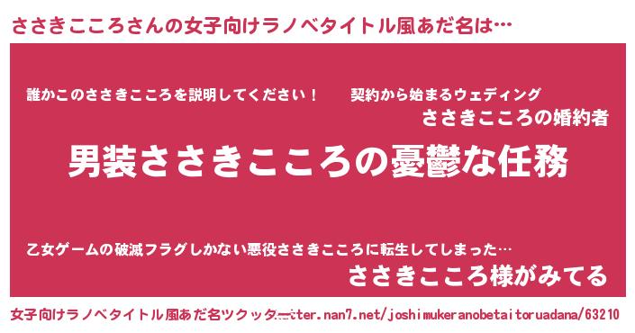 | 胡散臭い通販商品みたいなあだ名 | 『モテモテ間違いなし霊験あらたかなお札…その名も「ささきこころ」』 |
