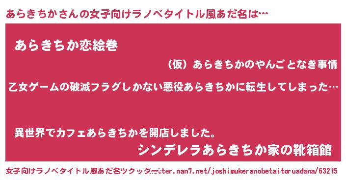 | 意味不明あだ名 | 『住所不定無職あらきちか(56歳)』 |