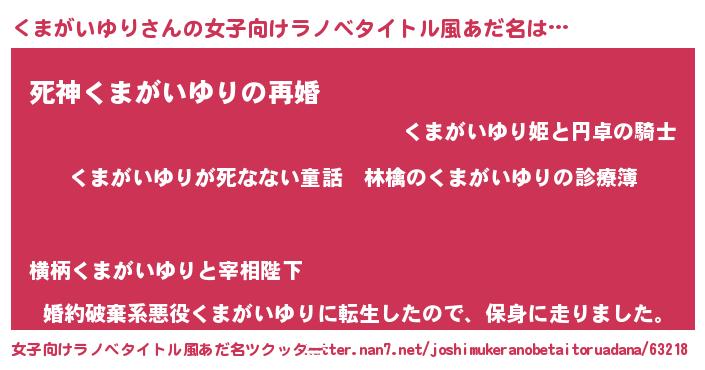 | 意味不明あだ名 | 『住所不定無職くまがいゆり(84歳)』 |