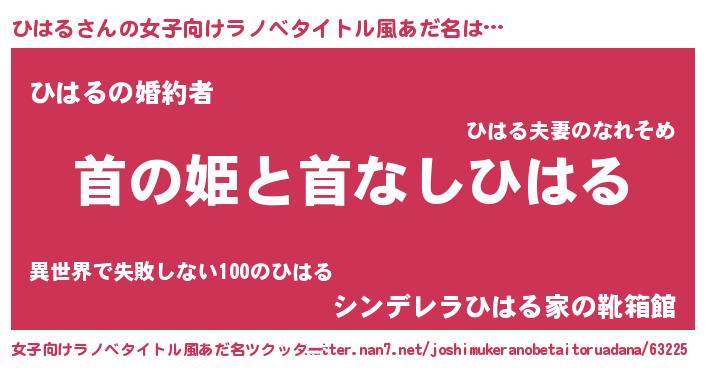| 男性向けラノベタイトル風あだ名 | 『はたらくひはるさま!』『緋弾のヒハル』 |