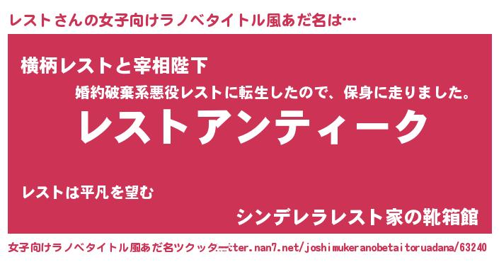 | 男性向けラノベタイトル風あだ名 | 『魔法科高校のレスト』『緋弾のレスト』 |