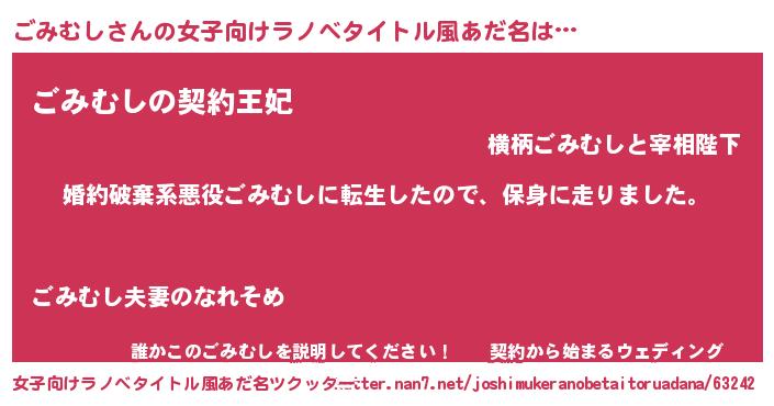 | 胡散臭い通販商品みたいなあだ名 | 『絶対に幸福をもたらす水素水…その名も「ごみむし」』 |