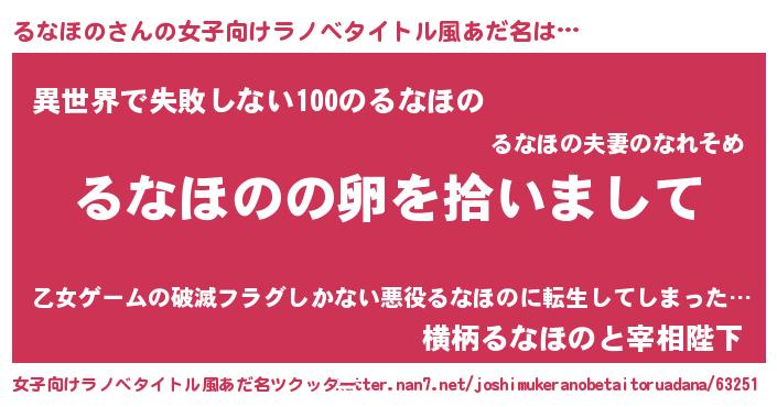 | 意味不明あだ名 | 『とにかく怪しいるなほの』 |