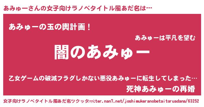 | 男性向けラノベタイトル風あだ名 | 『Re:あみゅーから始める異世界生活』 |
