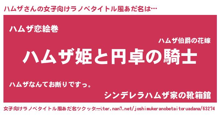| 胡散臭い通販商品みたいなあだ名 | 『モテモテ間違いなし水晶球…その名も「ハムザ」』 |