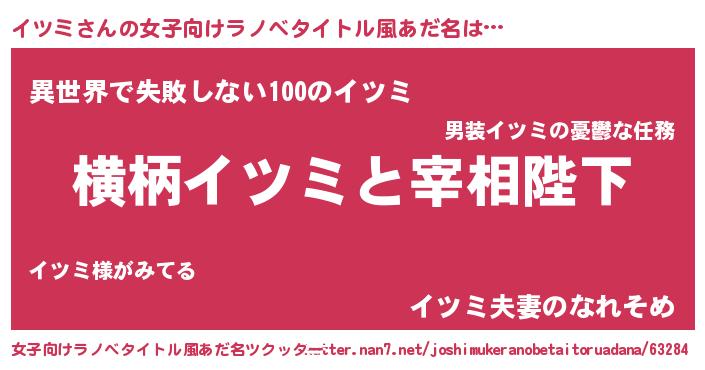 | 男性向けラノベタイトル風あだ名 | 『イツミに滅ぼされるだけの簡単なお仕事です』 |