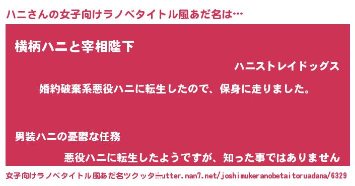 | 男性向けラノベタイトル風あだ名 | 『ハニスレイヤー』 |
