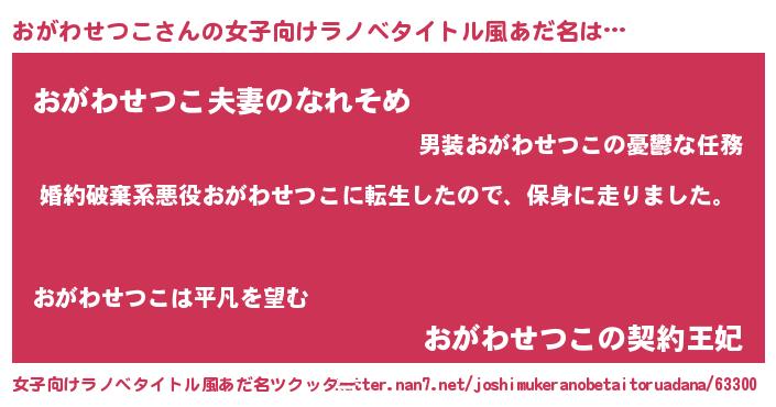 男性向けラノベタイトル風あだ名 | 『転生したらおがわせつこだった件』 |