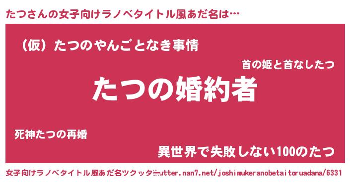 | ファンタジー風あだ名 | 『エターナルタツー』『タツフェル』 |