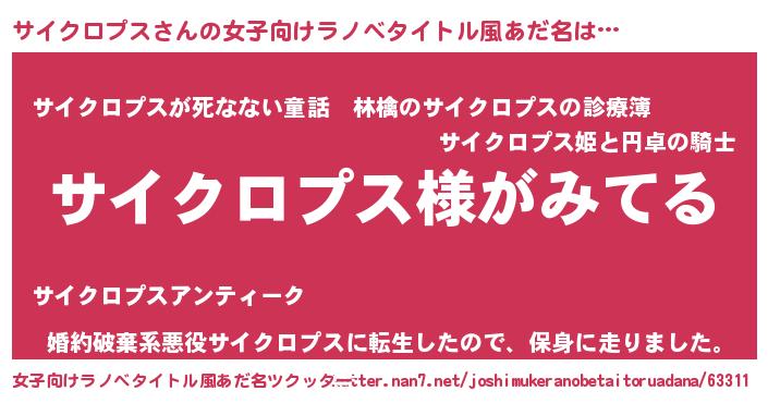 | 男性向けラノベタイトル風あだ名 | 『サイクロプスの嫁は女の子じゃないと思った?』 |