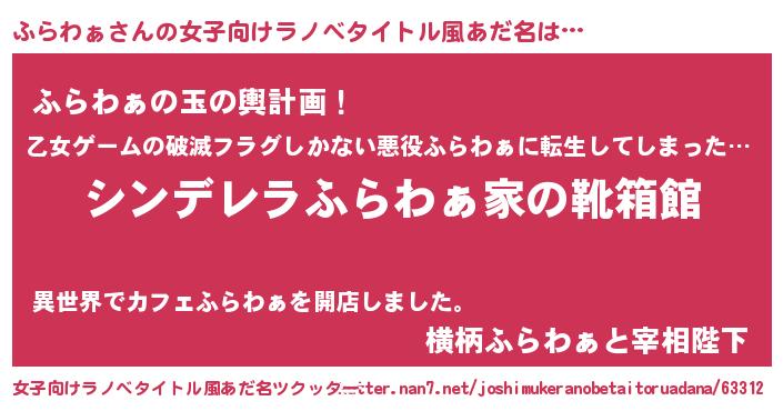 | 男性向けラノベタイトル風あだ名 | 『緋弾のフラワァ』『魔弾の王とふらわぁ』 |