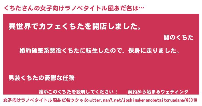 | 男性向けラノベタイトル風あだ名 | 『転生したらくちただった件』 |