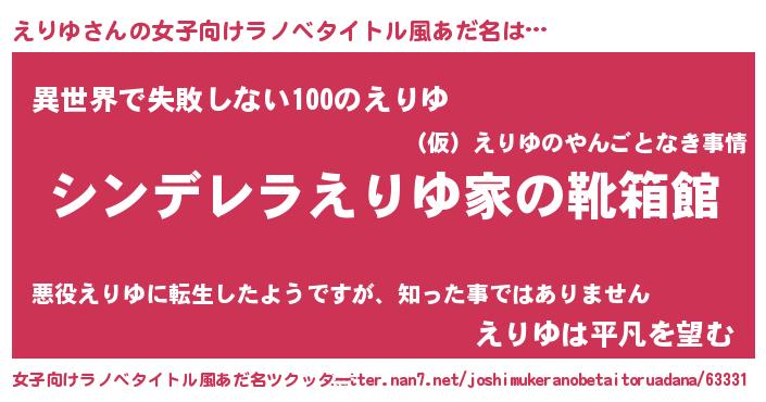 | 男性向けラノベタイトル風あだ名 | 『緋弾のエリユ』『えりゆの憂鬱』 |