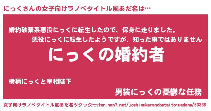 | 男性向けラノベタイトル風あだ名 | 『うちの娘の為ならば、俺はもしかしたらにっくも倒せるかもしれない。』 |