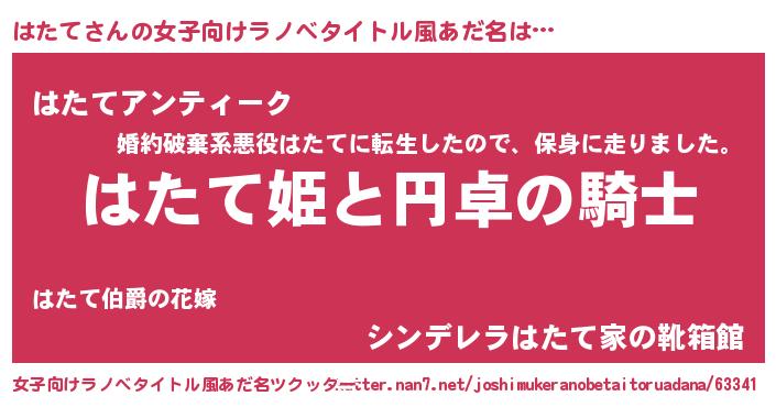 | 男性向けラノベタイトル風あだ名 | 『ハタテアートオンライン』 |