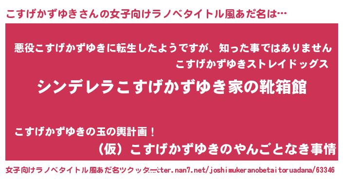 | 男性向けラノベタイトル風あだ名 | 『冴えないこすげかずゆきの育てかた』 |