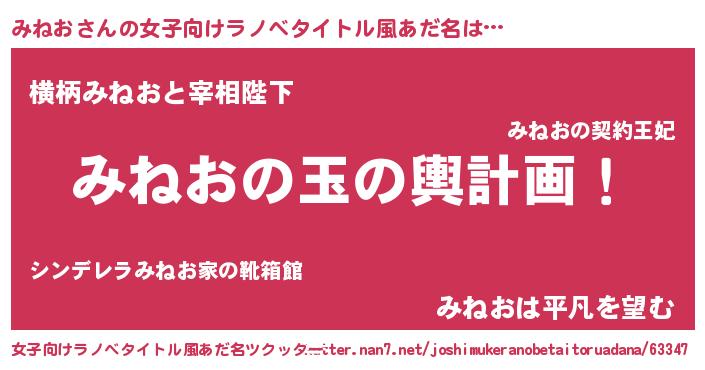 | 可愛いあだ名 | 『みねぷりん』『みっねぃー』 |